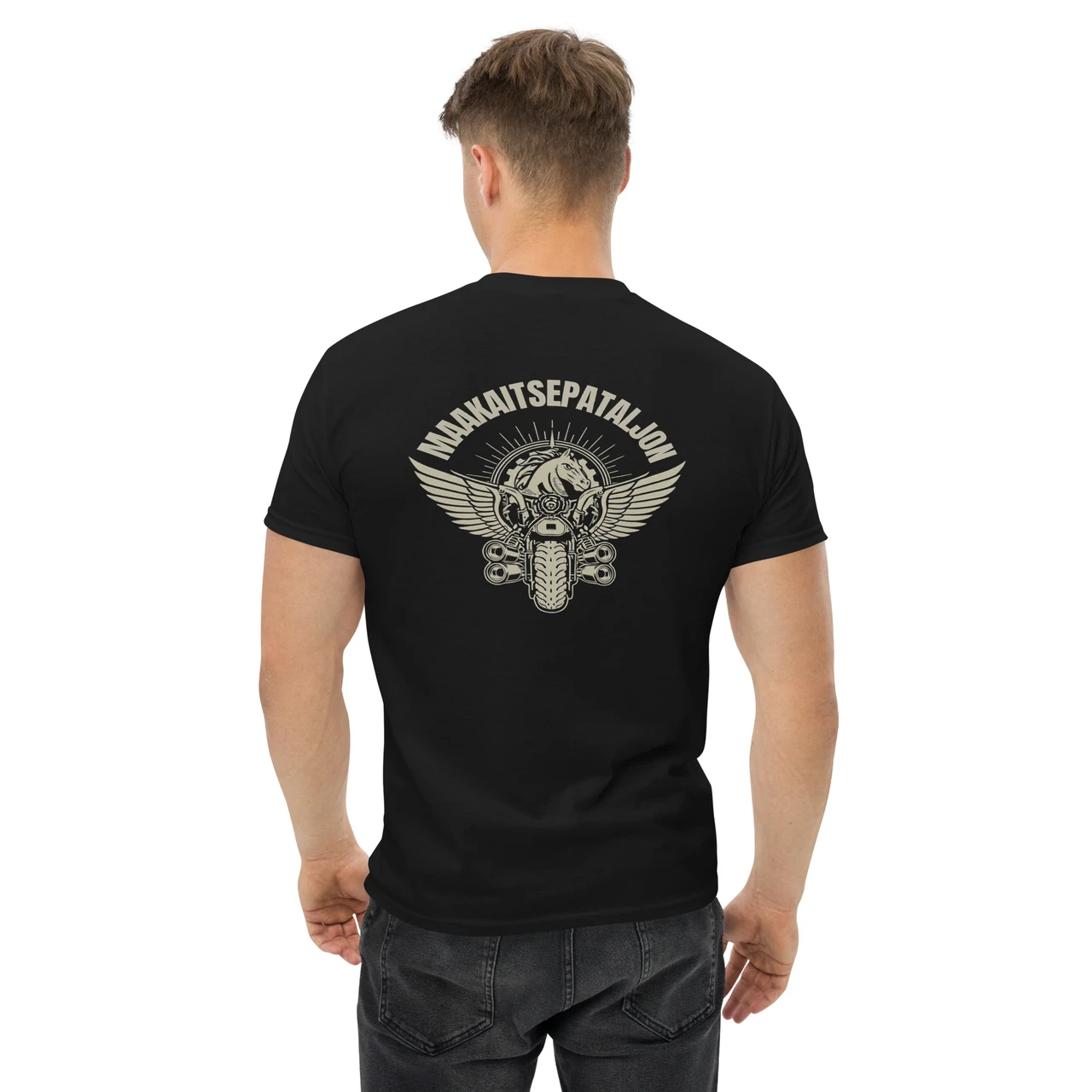 Kui tee lõpeb, algab sinu teekond. See särk on loodud neile, kes tegutsevad seal, kus teised peatuvad. Seljal laiuv Maakaitsepataljoni vapi edasiarendus – tiivuline raudhobune ja valvas ratsu – sümboliseerib kiiret reageerimist ja murdmatut iseloomu.